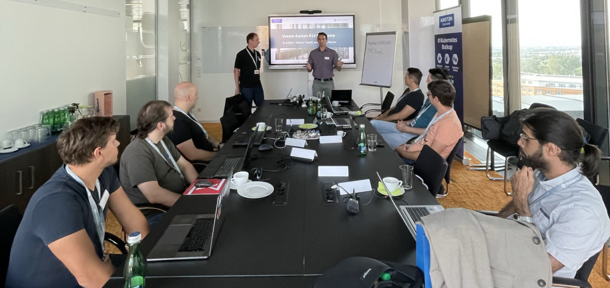 Einen Vormittag lang tauchten die Teilnehmer in die Welt des Cloud-nativen Backups ein und konnten dabei ihre ersten Schritte bei der Konfiguration ihres Kasten K10 Systems – dem skalierbaren System für Sicherung, Wiederherstellung, Disaster Recovery und Anwendungsmobilität – setzen.