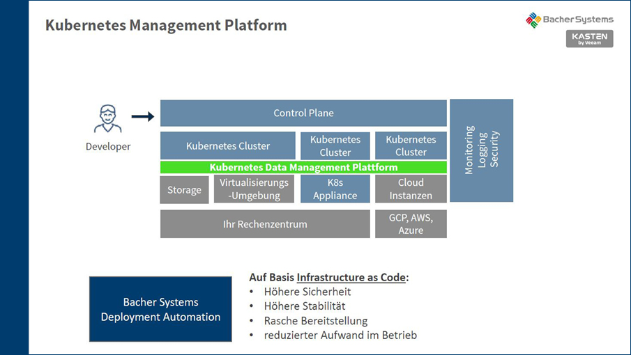 Über 65 IT-Entscheiderinnen und IT-Entscheider aus ganz Österreich konnten sich davon überzeugen, wie sie Aufbau und Betrieb einer Kubernetes-Plattform automatisieren und damit Komplexität reduzieren können. Und sie zeigen, wie eine zuverlässige Kubernetes-Plattform vom eigenen Datencenter in die Cloud skaliert.