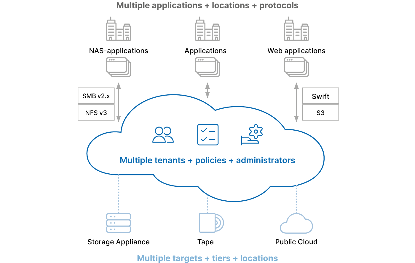 Additionally, traditional NAS protocols such as CIFS and NFS are fully supported for legacy access needs.